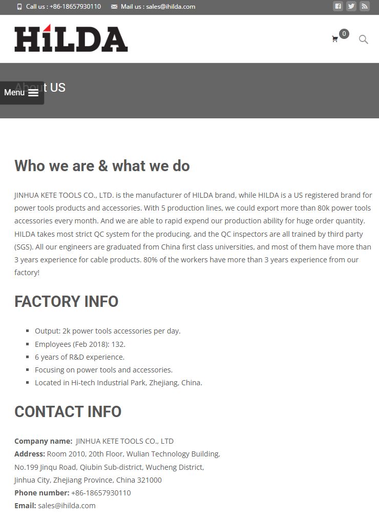 일단 모양을 흉내낸 공식 홈 웹사아트란 게 있기는 한데, 잘 보면 홈페이지와 연락처만 있다 정도로, 구성이 영 아니다. 그리고 쇼핑몰사이트에서 검색되는 여기 브랜드랄까 "HILDA 딱지"를 단 상품들이 엄청 많은 것에 비해서는 없다시피한 몇 개만 홈페이지에만 열거해놓았다.
