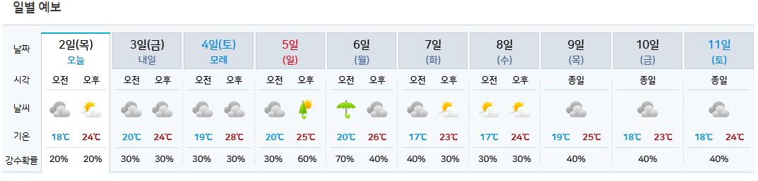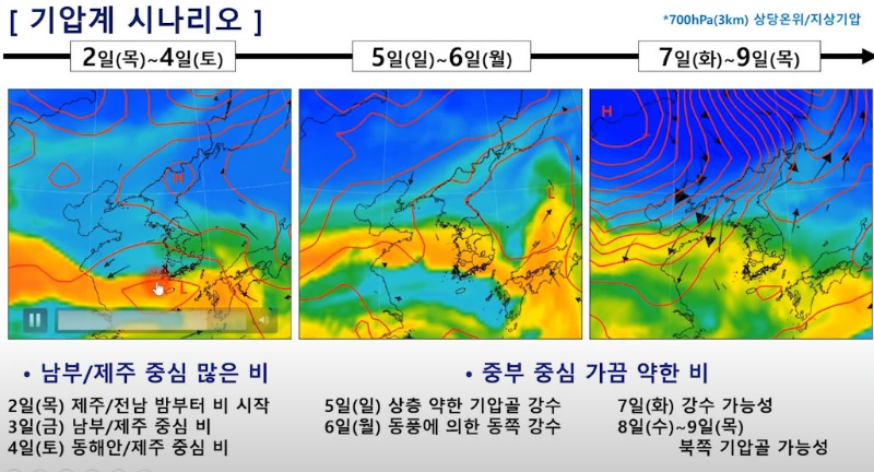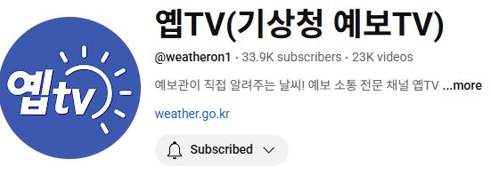 평일기준 오전 7~8시쯤이면 당일(그리고 다음날 정도) 날씨 영상이 올라옵니다.
