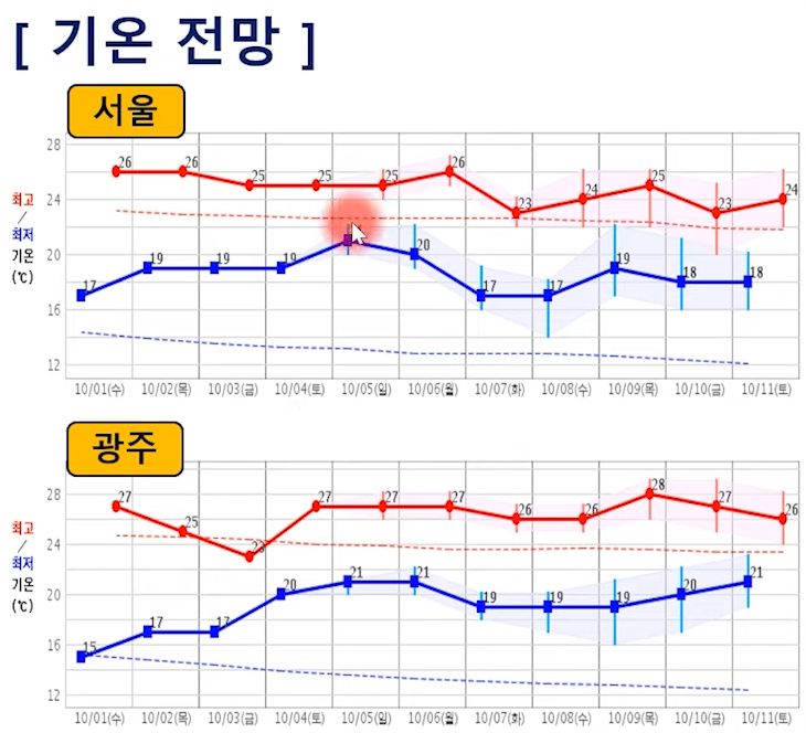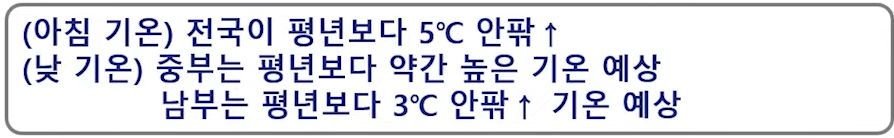그래도 아침최저든 낮최고든 기온이 평년보다는 높다고 합니다.