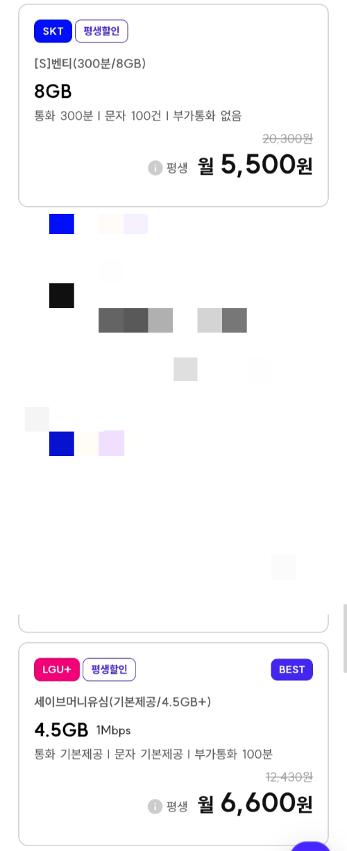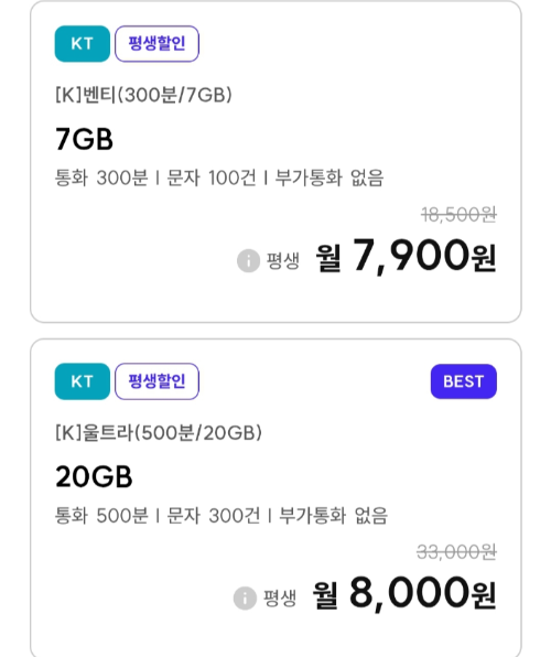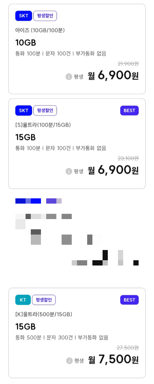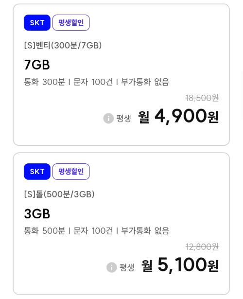 | 데이터 15GB, 통화 500분, 문자 100건 알뜰폰요금제 (매월 8920원 평생) (0) | 2025.09.27 |