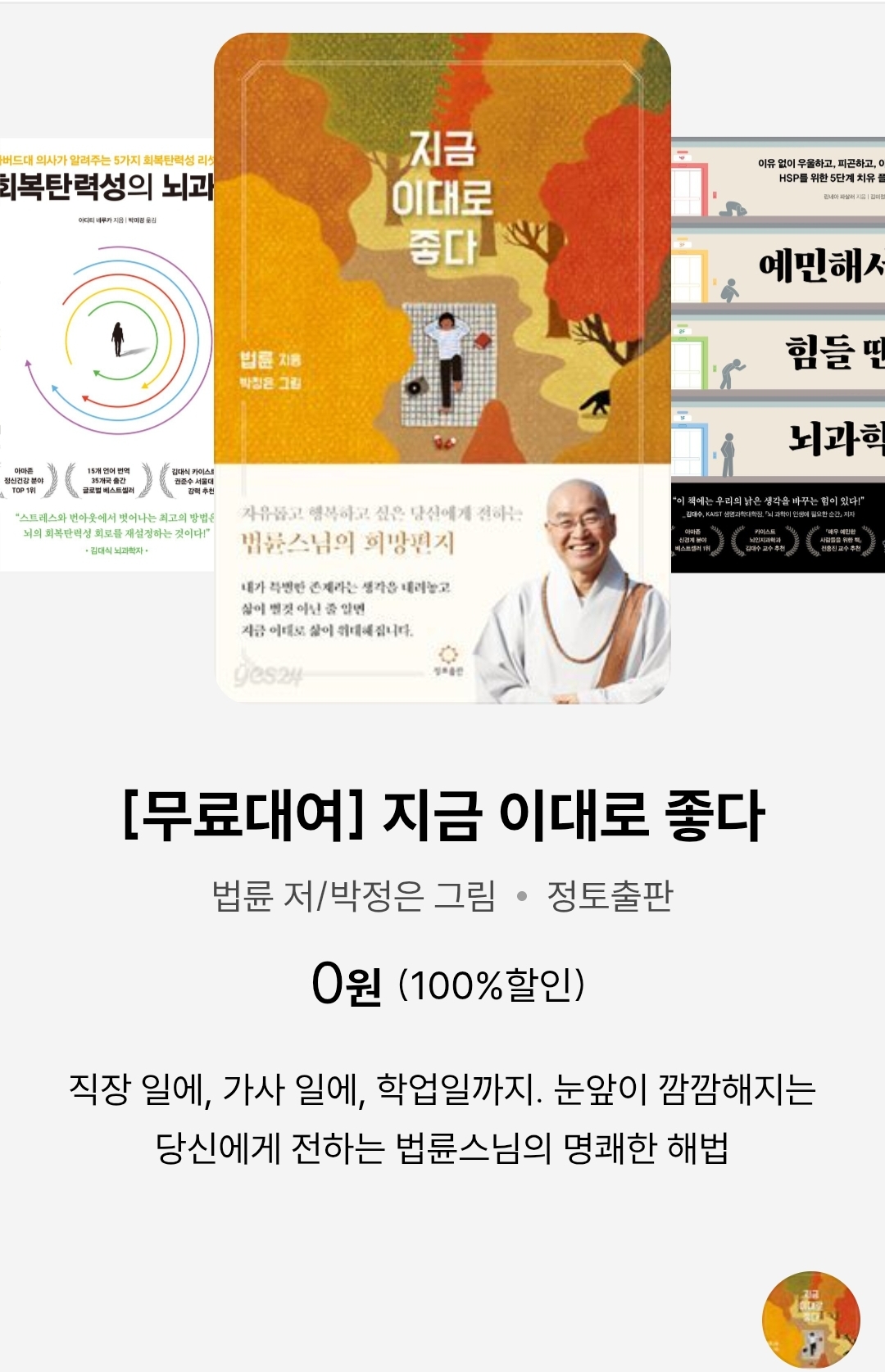 | (예스24, 추석연휴 무료대여 전자책) 지금 이대로 좋다 (법정스님의) (0) | 2025.10.04 |