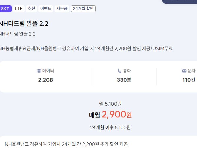 NH더드림 알뜰 2.2