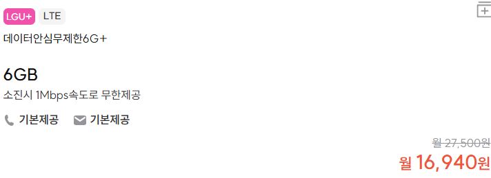 ㅡ 데이터 6기가, 8기가, 10기가를 제공하는 평생요금제가 각각 4천원대, 5천원, 6천원대 정도에 보입니다.