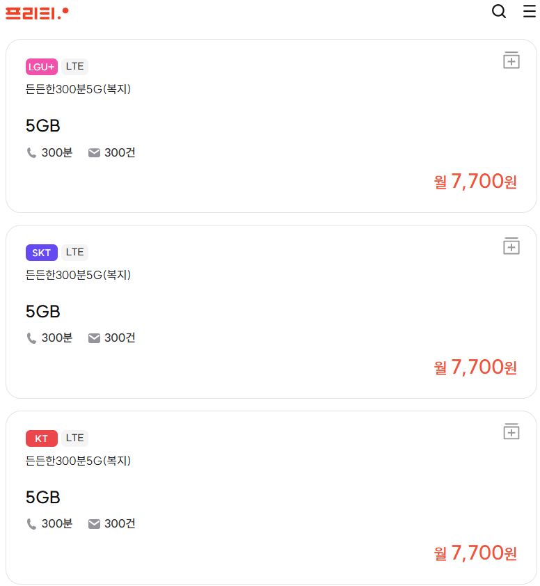 (프리티) 알뜰폰 요금제 몇 가지 본문