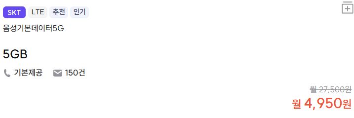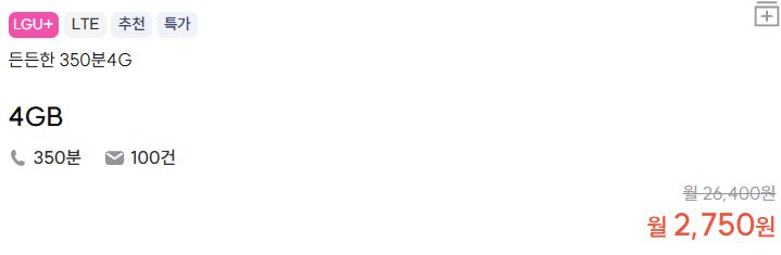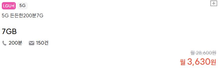 ※ 요금제 상품들은 월중에 얼마든지 가격변동되거나 종료될 수 있습니다.