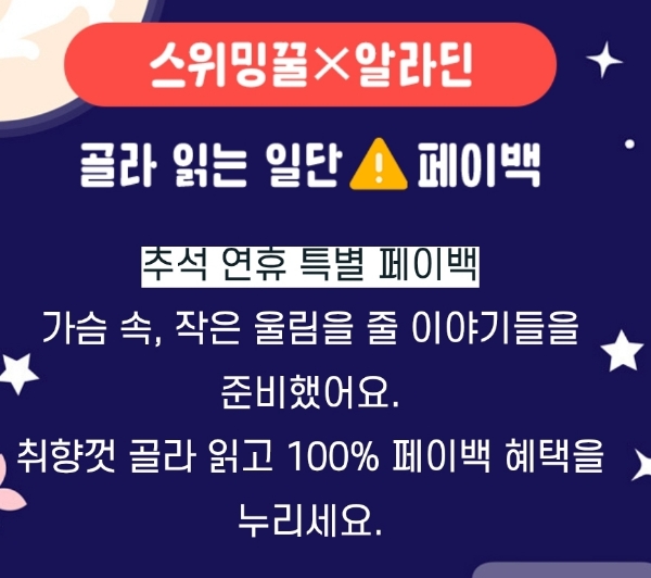 추석 특선 일단 페이백 스위밍꿀×알라딘 골라 읽는 100% 대여 페이백