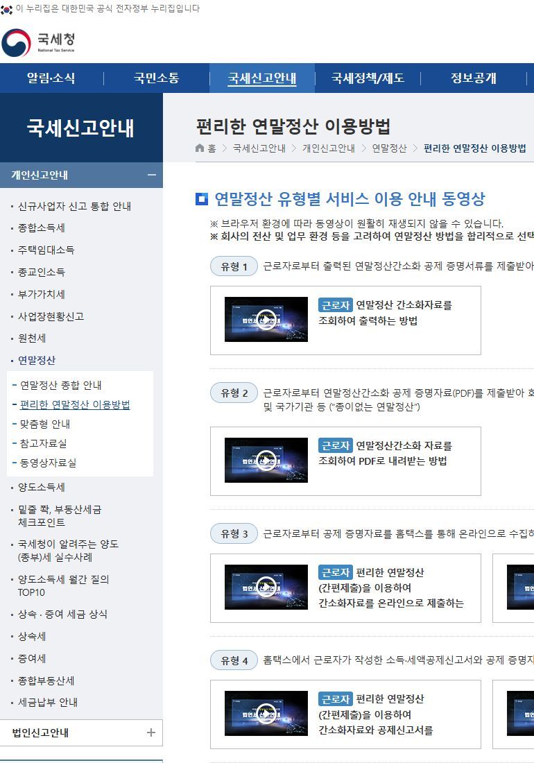 편리한 연말정산 이용방법 (feat. 국세청 안내영상 목록) 본문