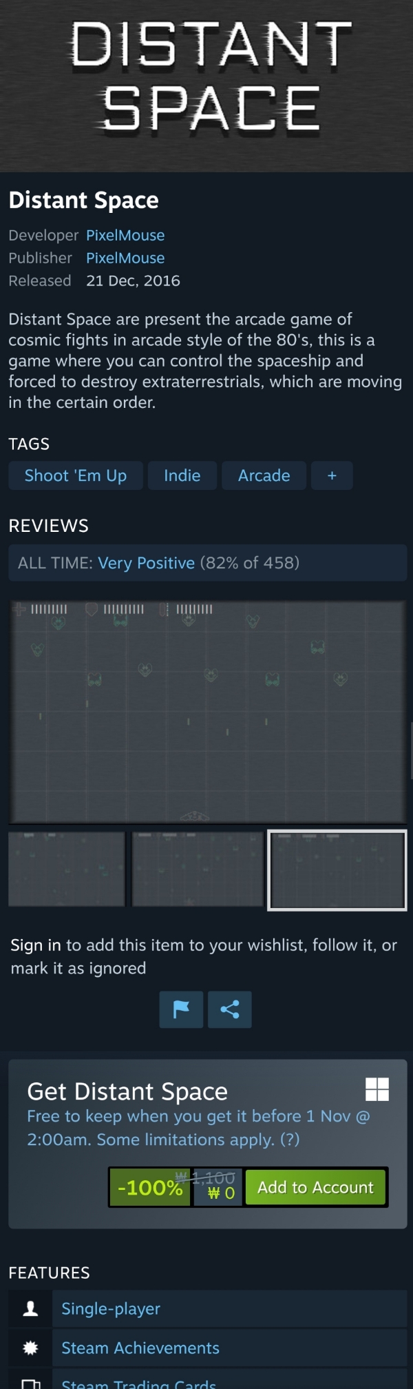 Distant Space are present the arcade game of cosmic fights in arcade style of the 80's, this is a game where you can control the spaceship and forced to destroy extraterrestrials, which are moving in the certain order.