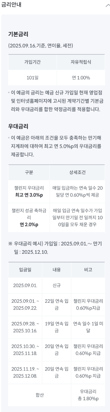 기본금리는 1%, 모든 조건 클리어시 6%.