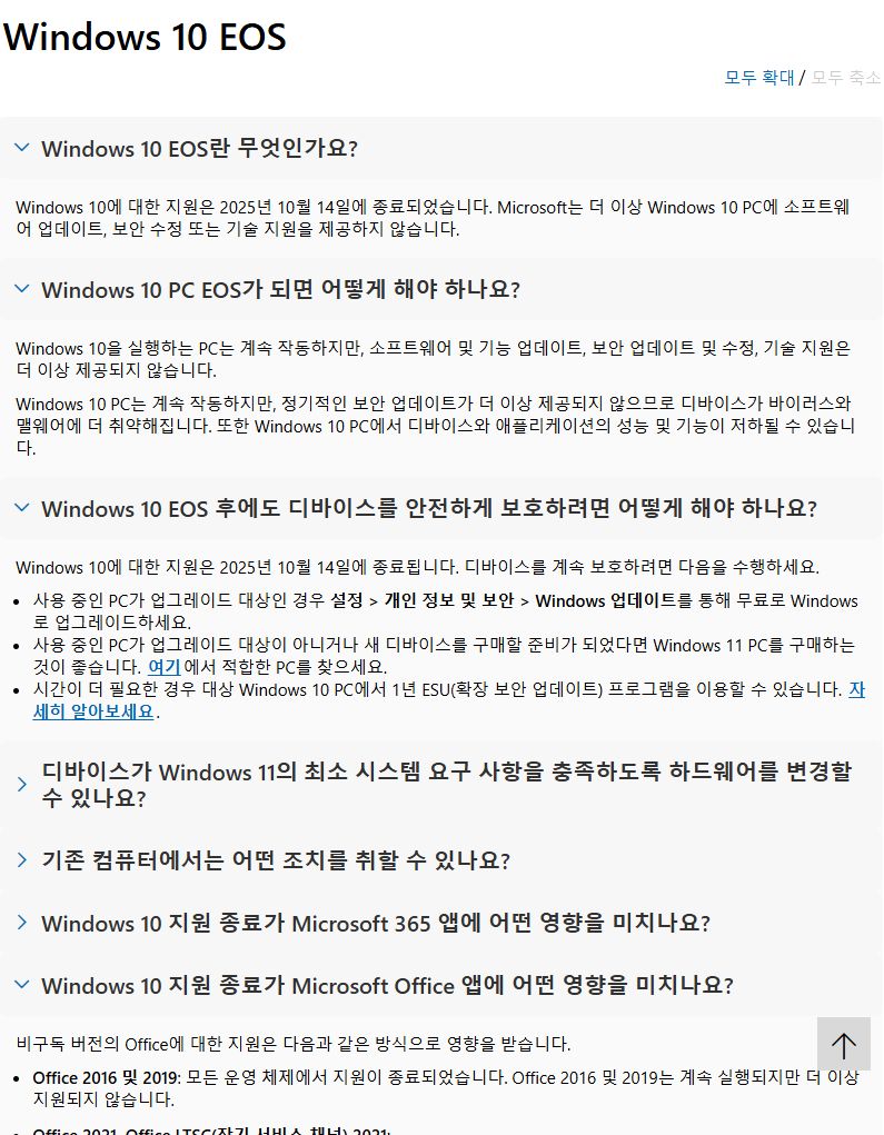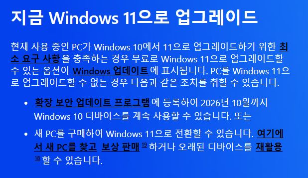 윈도우10 제품지원이 종료된 다음 보이는 화면 등/:/ Windows 10 소비자 ESU(확장 보안 업데이트) 본문