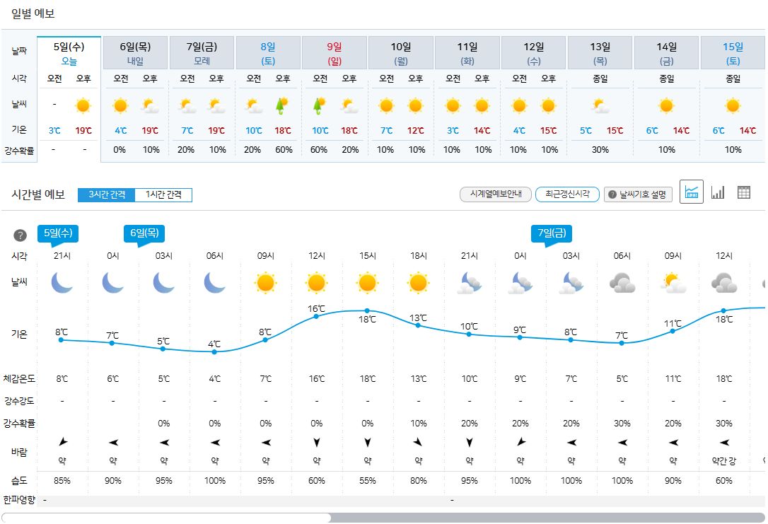 아침최저기운 5~10도.