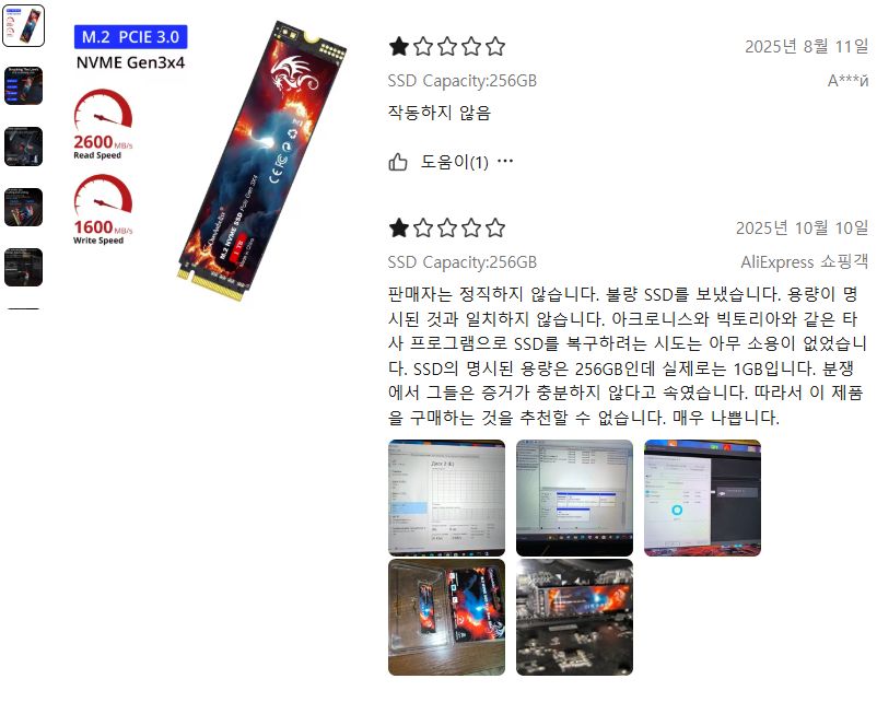 (저런 용량사기 저장장치는, 중국 판매자가 국내 오픈마켓에도 셀러샵을 오픈하고 물건을 올려 낚시질을 하고 있습니다. 정말정말 미운 놈 일을 망치고 싶다면 저런 걸 주라는 사악한 농담이 있다나 없다나..)