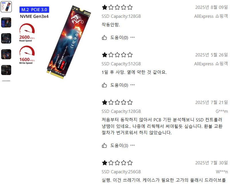 QC불합격품 처리장이 아닌가하는 생각도.. 외국에 날아가버리면 반품되지도 않을테고, 뜯지도 않고 잊어버리거나 처음 물려만 보고 별다섯개주는 사람들도 흔할테니..