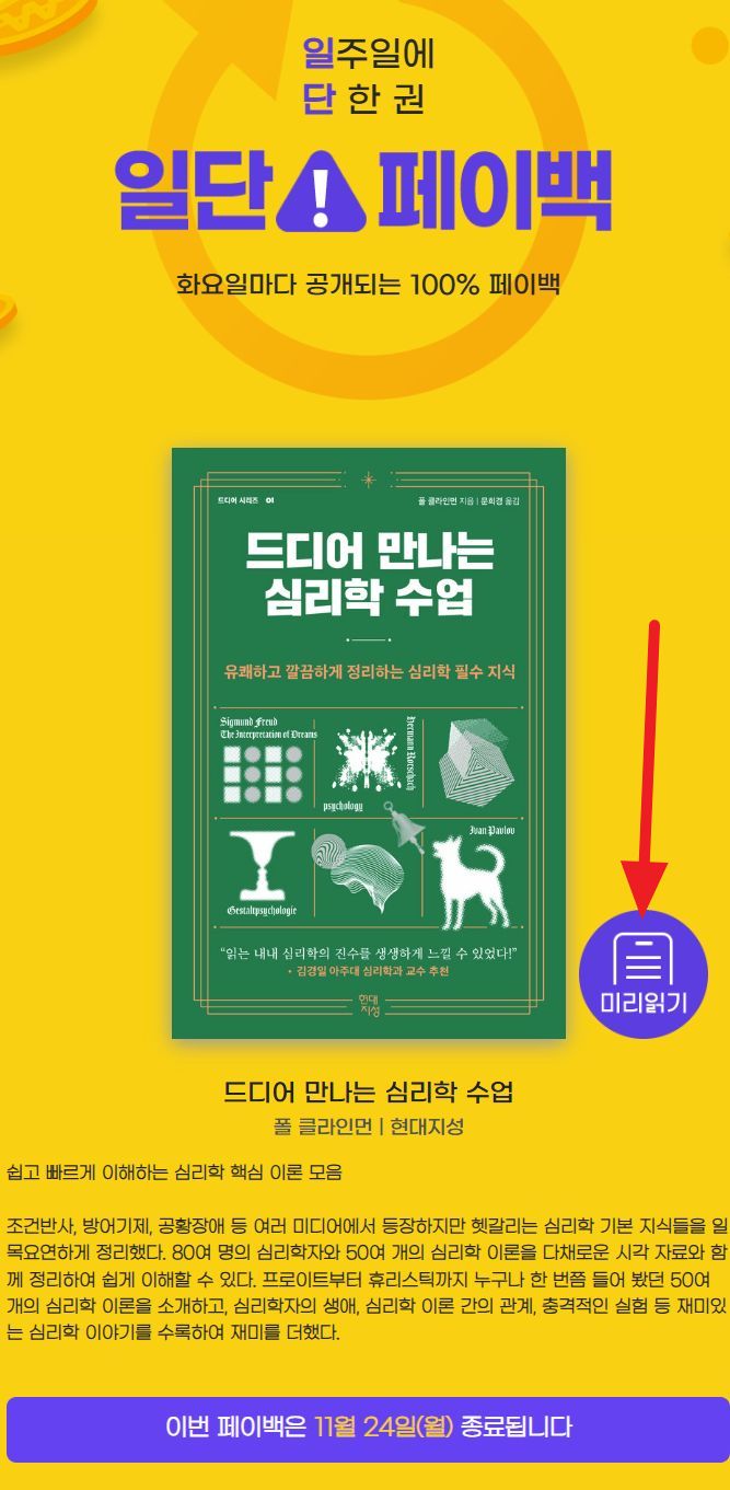 매주 화요일 100% 돌려드려요, 일단 페이백 드디어 만나는 심리학 수업