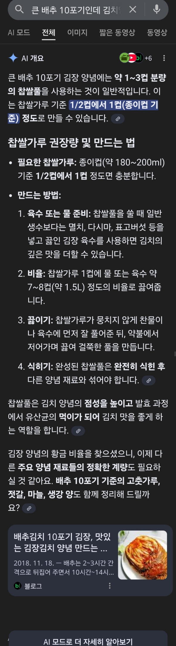 김장할 때 찹쌀가루 얼마나 쓰는지 AI에게 물어본 것 본문