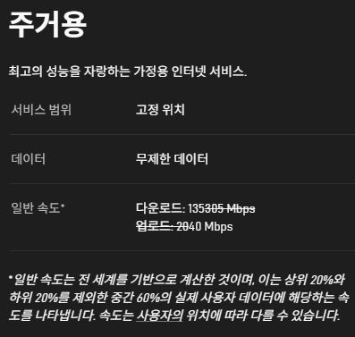 ㅡ 고정위치인 듯한데 주거용이라 이름붙은 가정용 서비스 장비가격은 55만원. 월요금은 87000원부터 시작.