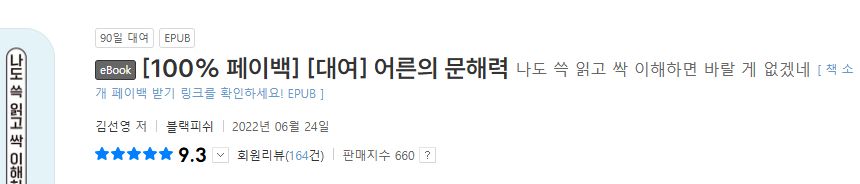 (예스24페이백 90일 대여전자책) 어른의 문해력 - 나도 쓱 읽고 싹 이해하면 바랄 게 없겠네 (김선영), 팔리는 한 줄 - 꽂히는 메시지의 5가지 법칙 (벤 구트만), 그 외 소설 등