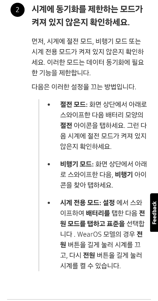 2. 시계에 동기화를 제한하는 모드가 켜져 있지 않은지 확인하세요