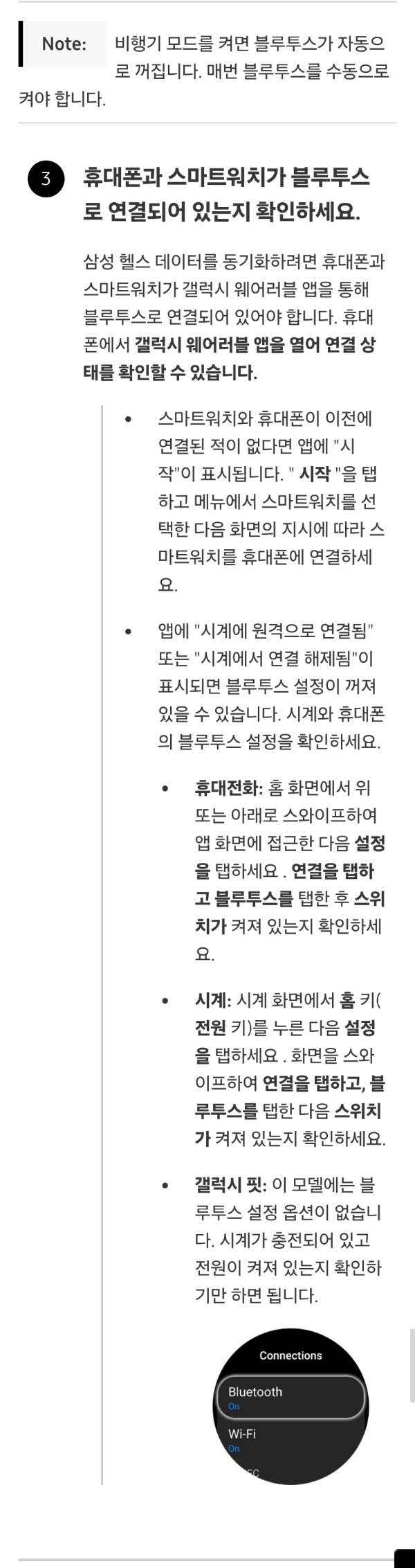 3. 휴대폰과 스마트워치가 블루투스로 연결되어 있는지 확인하세요