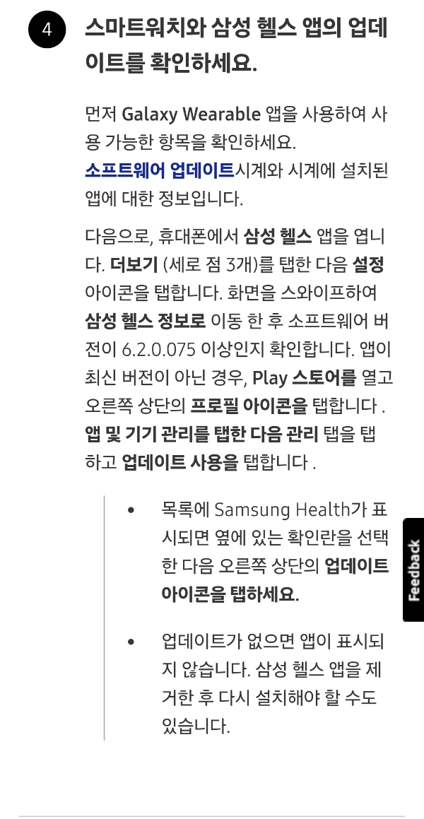4. 스마트워치와 삼성 헬스 앱의 업데이트를 확인하세요