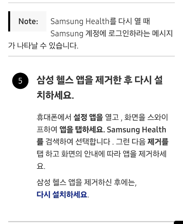 5. 삼성 헬스 앱을 제거한 후 다시 설치하세요