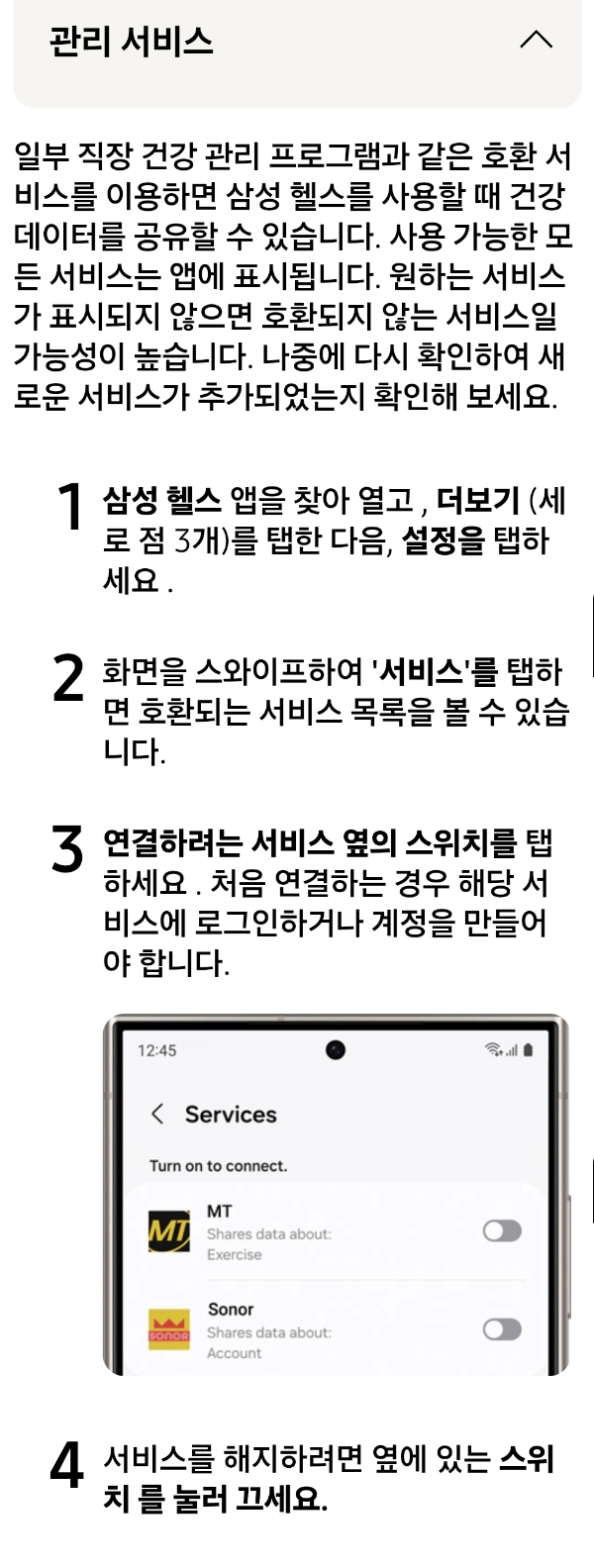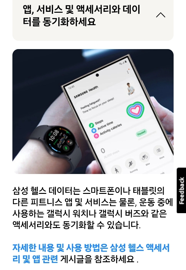 삼성헬스에서 데이터를 동기화하세요 - samsung.com