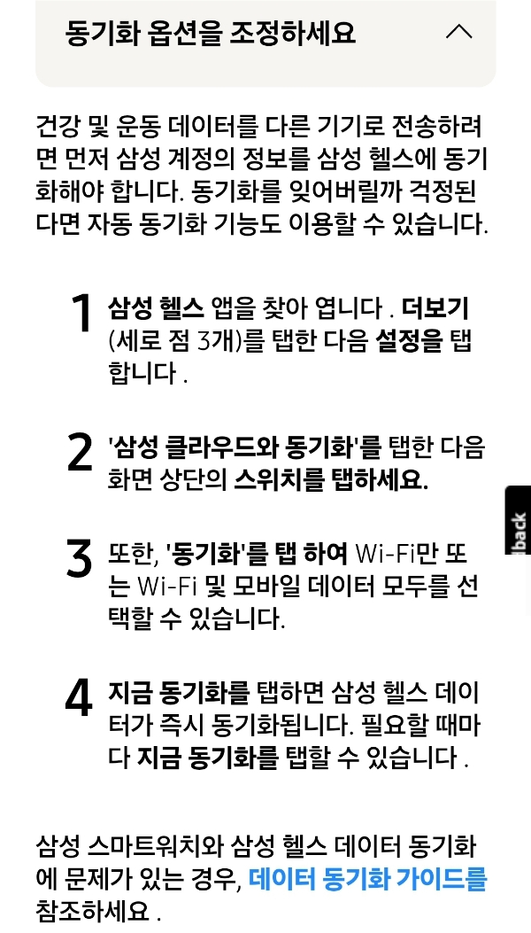 삼성헬스 데이터가 동기화되지 않습니다 - 트러블슈팅, 삼성닷컴