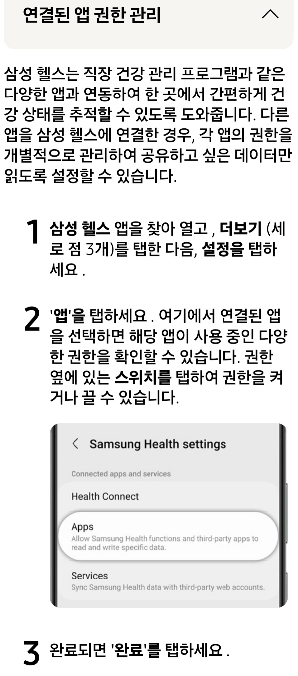 서드파티 앱과 스마트저울 등의 데이터를 삼성헬스에 공유(전송)시키기, 삼성공홈, 갈무리한 것 메모 본문