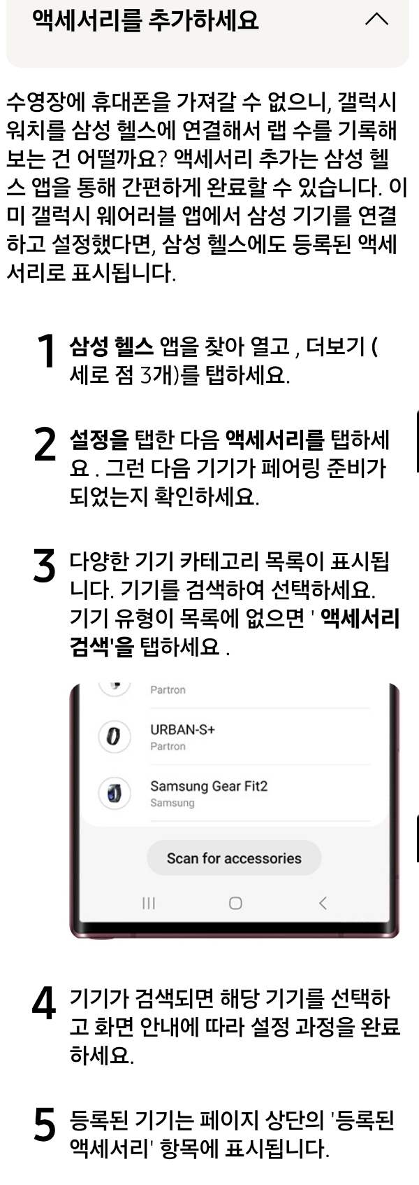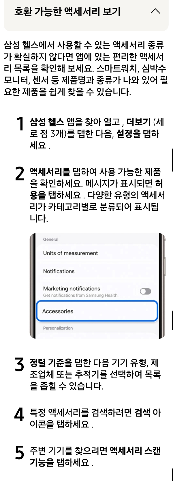 (삼성헬스 앱에서) 호환가능한 액세서리 보기