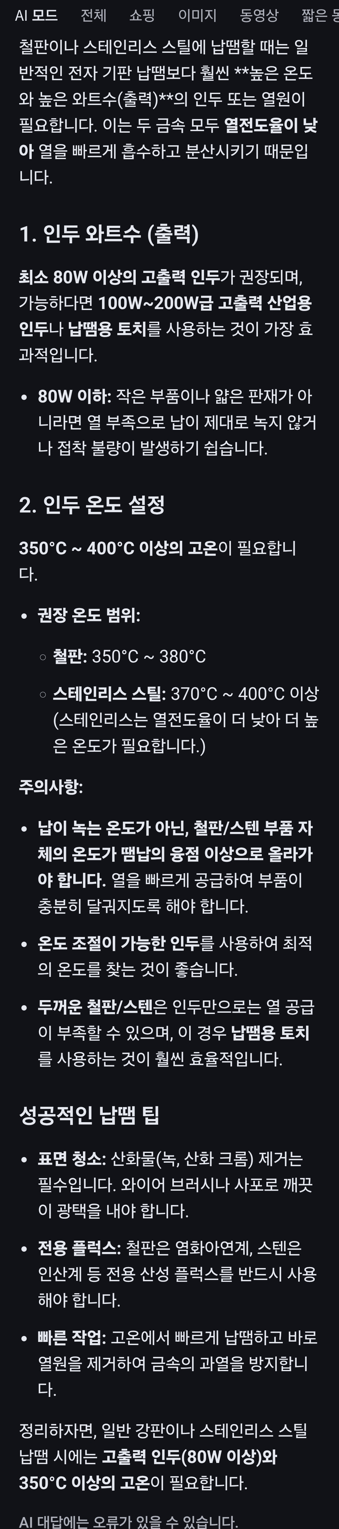 스테인리스 스틸, 강판, 양철과 함석 납땜: AI챗봇 본문