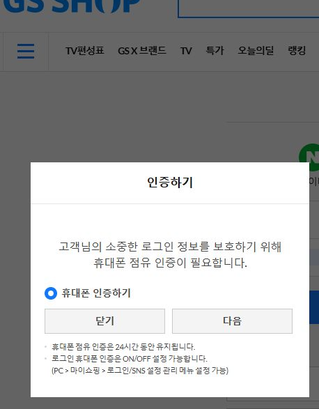 PC웹은 매번 로그인할 때마다 전화 문자인증을 받습니다.