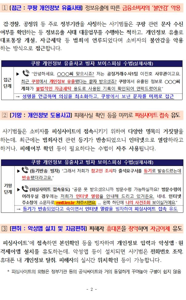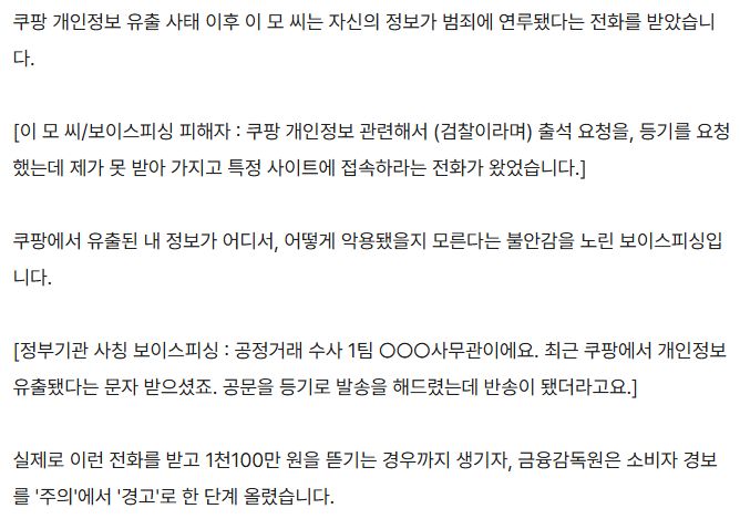(거의 전국민이 털렸다는 쿠팡 개인정보 유출사태를 접한) 금융소비자의 불안감 악용,
