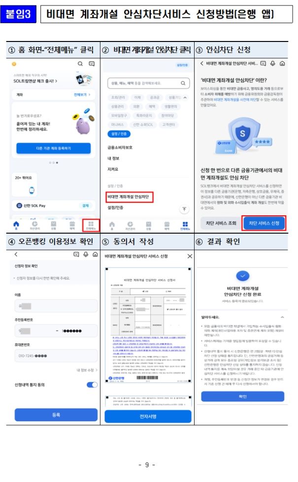 비대면 계좌개설 안심차단서비스 신청방법 (은행 앱)