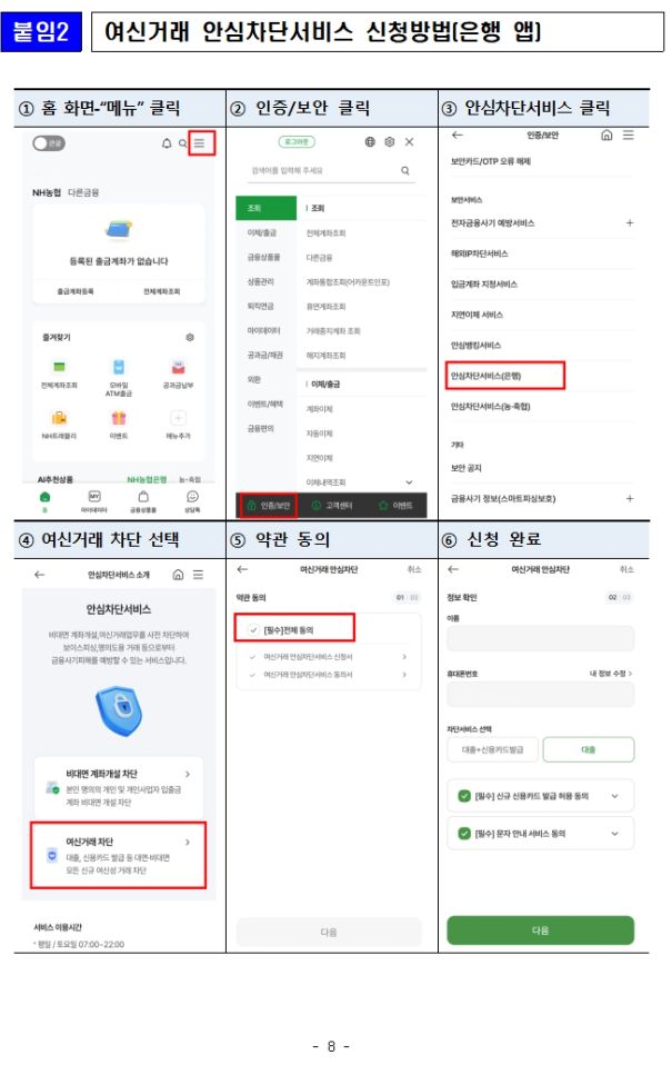 여신거래 안심차단서비스 신청방법(은행 앱)