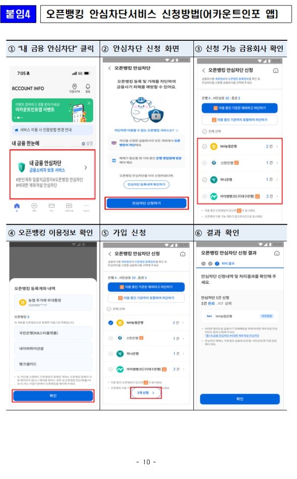 오픈뱅킹 안심차단서비스 신청방법(어카운트인포 앱)