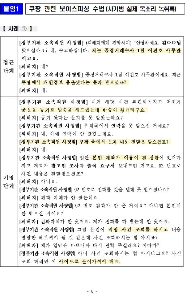 쿠팡 관련 보이스피싱 수법(사기범 실제 목소리 녹취록)