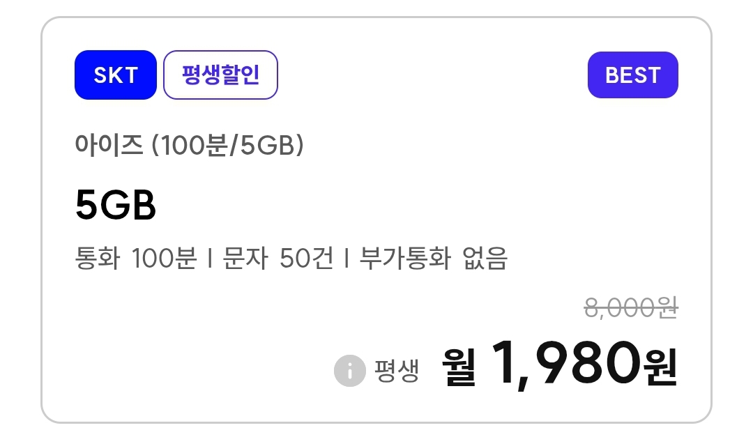 | (알뜰폰요금제) 아이즈모바일 LGU망) 1Mbps QoS 평생요금제 몇 가지 (0) | 2025.12.21 |