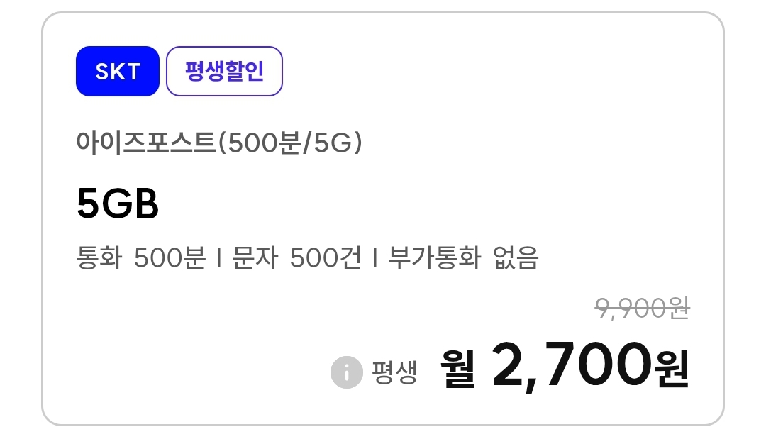 | (알뜰폰요금제) 아이즈모바일 LGU망) 1Mbps QoS 평생요금제 몇 가지 (0) | 2025.12.21 |
