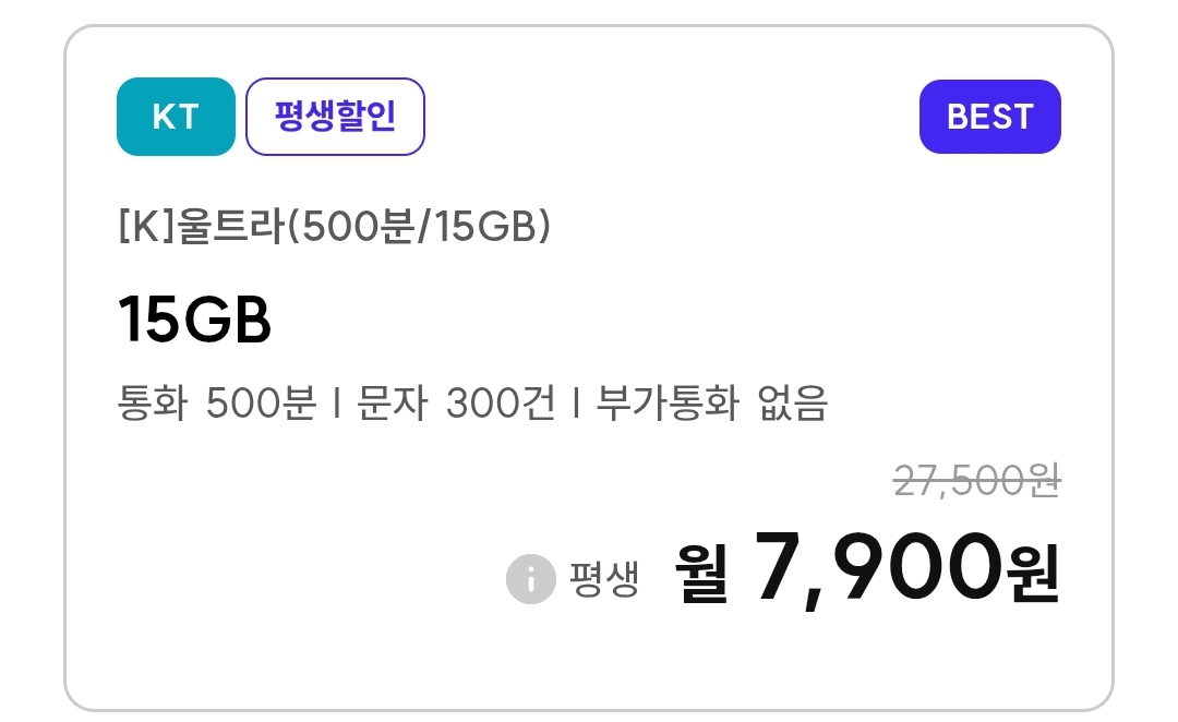 통화 기본제공량 500분이나 1000분은 무제한과 차이가 없어보이는데, 15XX 등 부가통화를 이용할 때의 제공량이 다릅니다. 300분 이상이면 대부분 충분하겠지만 30분이면 가끔 넘을 수도 있겠죠.