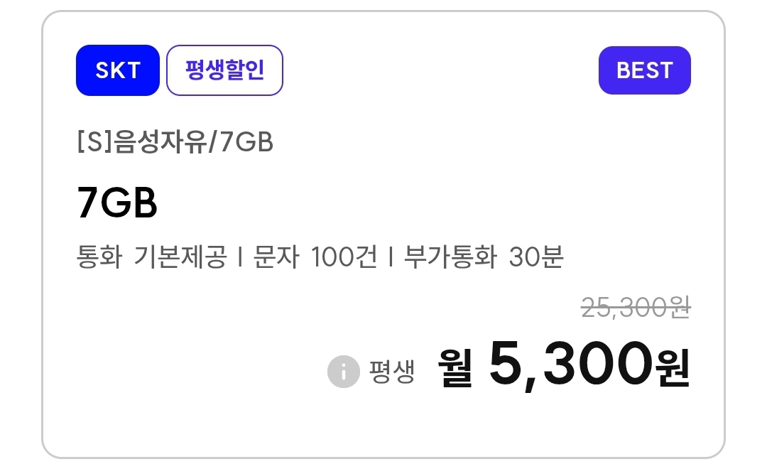 | 알뜰폰) 프리텔레콤 SKT망, 데이터 4GB, 6GB, 5GB+통화무제한, 10GB 기본제공, 저렴이 평생요금제 (0) | 2025.12.03 |