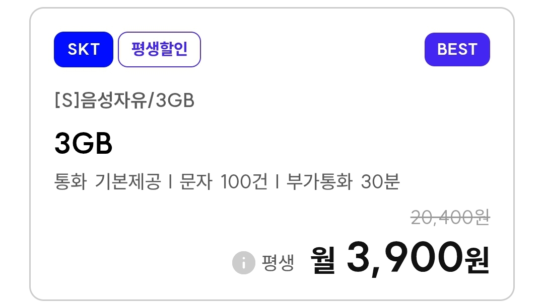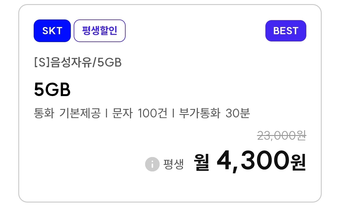 | 알뜰폰) 프리텔레콤 SKT망, 데이터 4GB, 6GB, 5GB+통화무제한, 10GB 기본제공, 저렴이 평생요금제 (0) | 2025.12.03 |