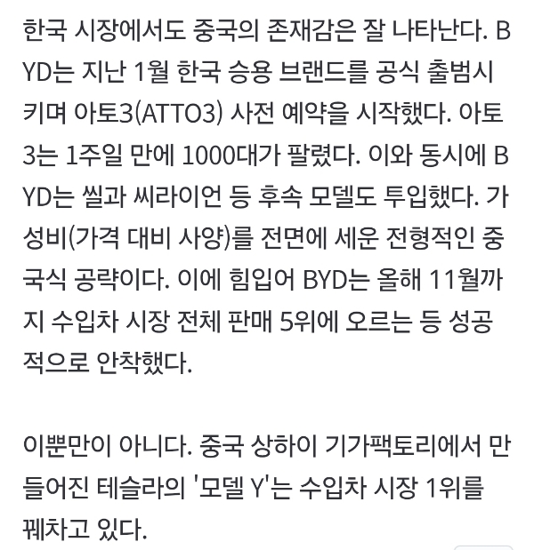 중국 전기차의 ‘저가 공습’이 한국으로 방향을 틀고 있다. 내수에서 키운 물량이 미국·유럽연합(EU)의 관세 장벽에 막히자, 인접 시장인 한국이 새로운 출구로 부상하는 모양새다. 한국을 노
