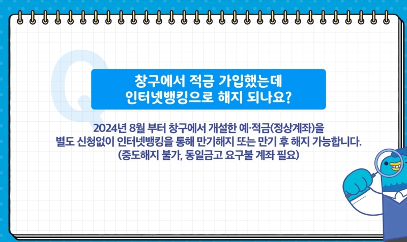 Q. 창구에서 가입한 적금의 인터넷뱅킹 해지