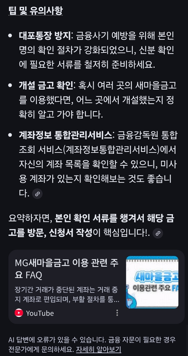 MG새마을금고, 장기간 이용하지 않아 거래중지된 계좌 풀기에 대해, 그 외 몇 가지 정리 본문