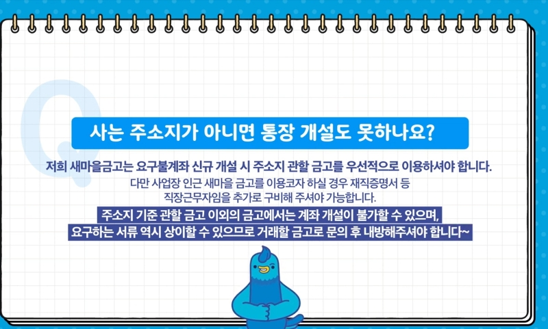 Q. 사는 주소지가 아니면 통장 개설을 못하나요?