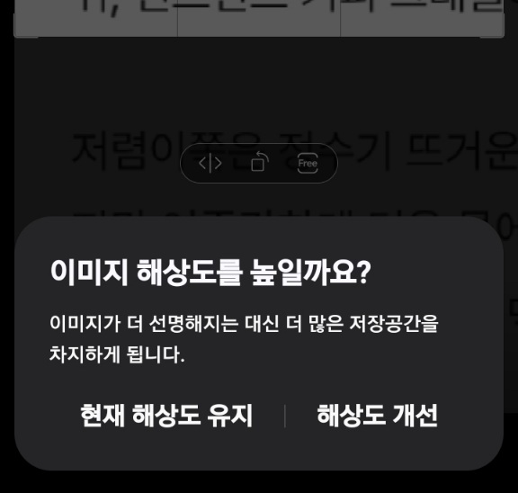 삼성 갤럭시 갤러리앱 개선희망점: 해상도 높이기 제안 팝업, 해상도 수동으로 높이기 메뉴 본문