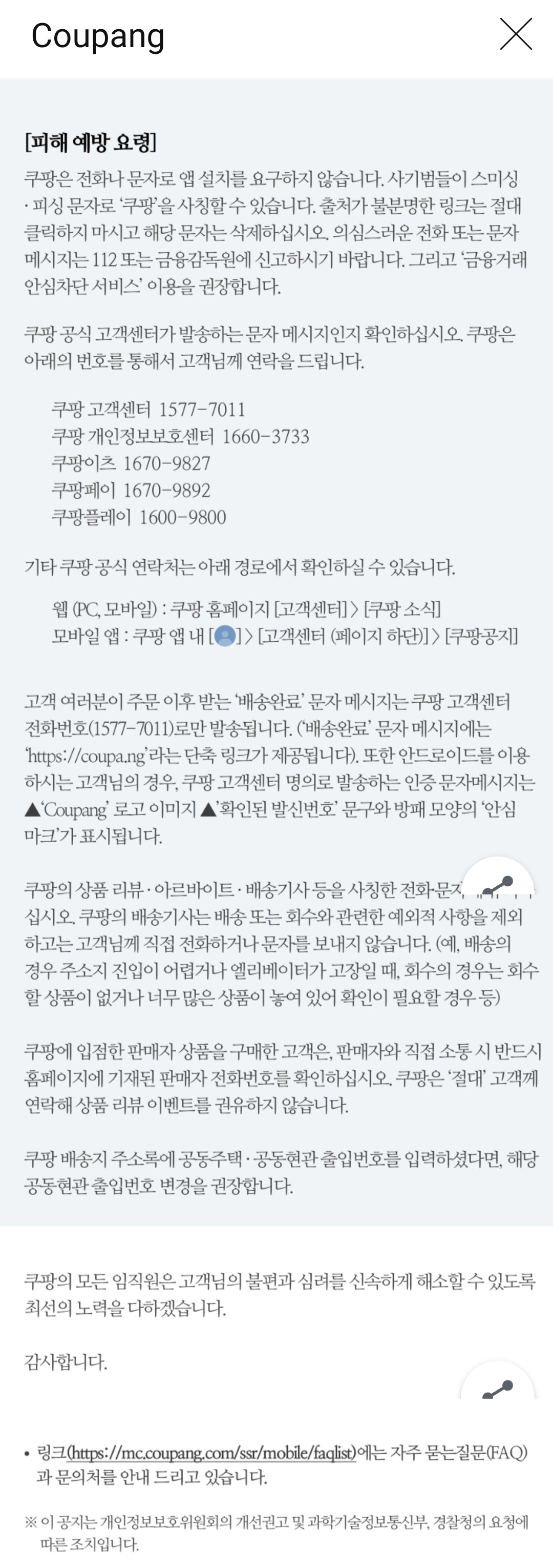| 쿠팡 회원 개인정보 유출 통지 문자 내용과 FAQ(문답)링크/:/ 유출된 개인정보에는 배달주소에 더해 공동현관 비밀번호도 포함 (0) | 2025.12.03 |