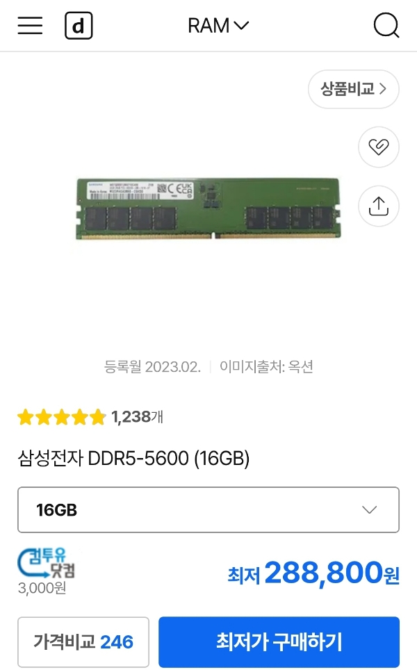 삼성전자 DDR5-5600 (16GB) : 다나와 가격비교