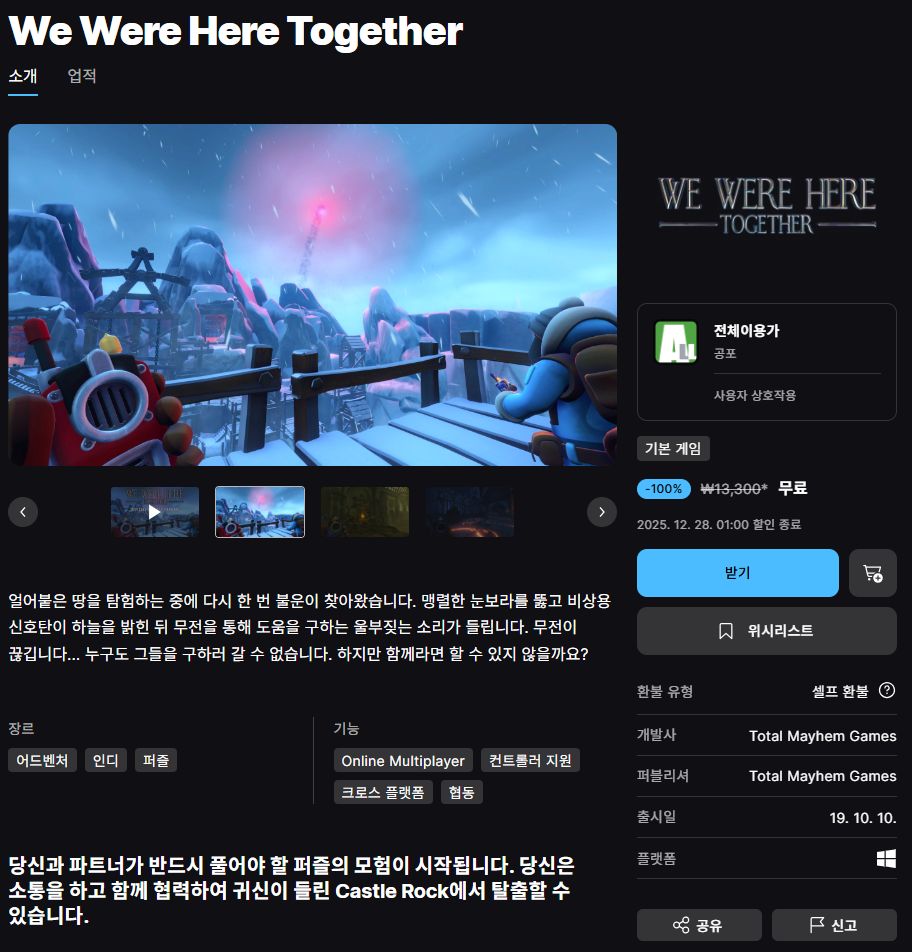 (에픽게임즈 무료게임) We Were Here Together 본문