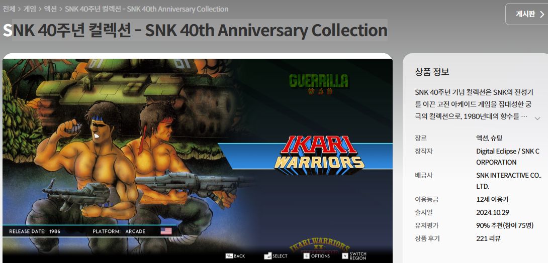 (스토브 무료게임) NK 40주년 컬렉션 - SNK 40th Anniversary Collection 본문